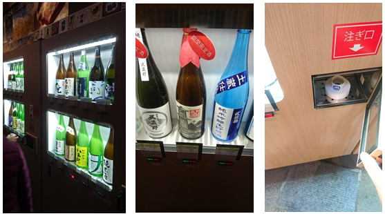 35種類の日本酒から1つ選びボタンを押すと日本酒がおちょこへ。