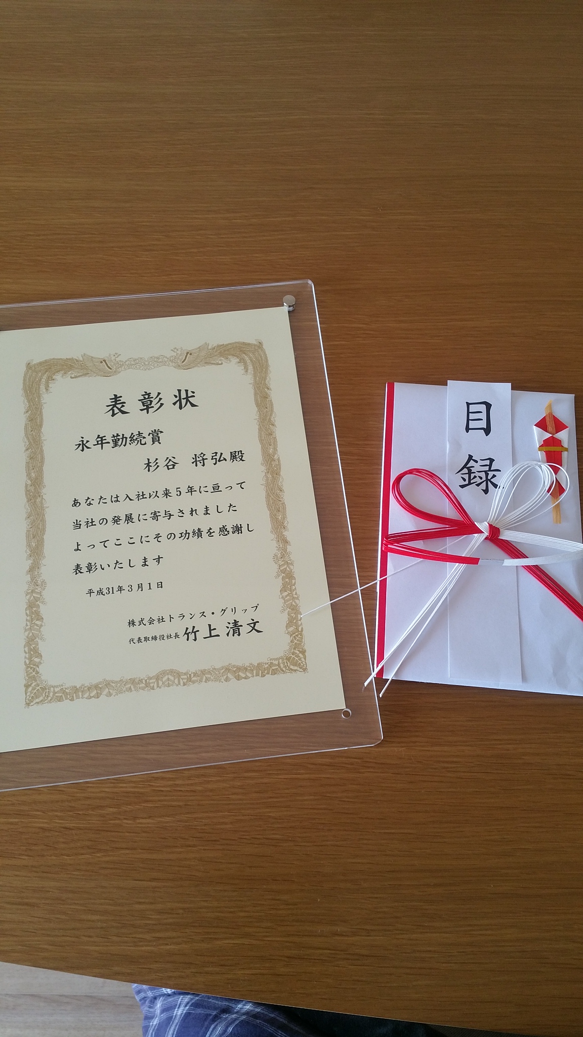 5年勤続の加藤さん、早川さん、菅沼さんと私、杉谷が受賞いたしました。
