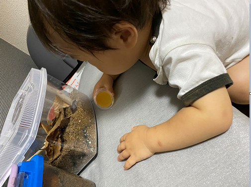 私が虫を触れないので、管理部の皆様が「息子のために…!」と捕まえてくれ、現在自宅で飼育中です。