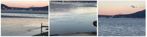 前回の御神渡り発生地帯も凍結していない状態。